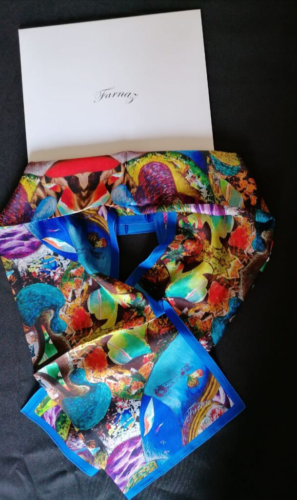 Des foulards artistiques nés de mes œuvres d’arts inspirés par la nature, l’émotion et la poésie. Chaque pièce est une création unique qui transforme l’art en élégance à porter.